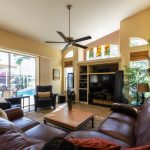 The homes design features a three way split plan. Some of the added amenites include a solar hot water heater, a home theater surround sound system that is wired for your speakers in family room, lanai area, and master bath. Sherwin Williams Duration paint was added to the exterior in 2014.